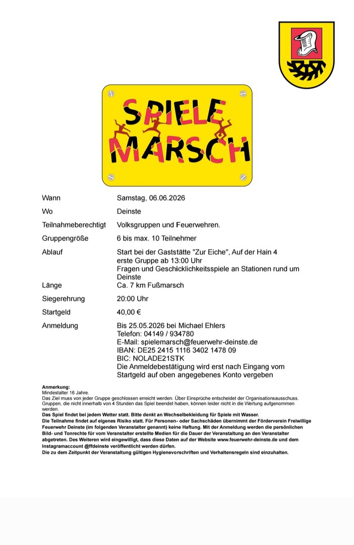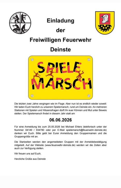 Für Termine rund um die Freiwillige Feuerwehr Deinste einfach auf "Google Kalender" klicken.